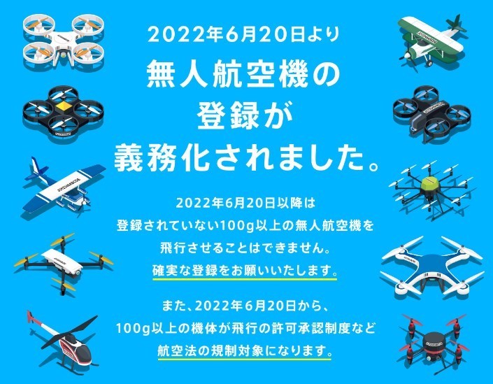 2020年の改正航空法に基づき、登録していない無人航空機の飛行は禁止されます。